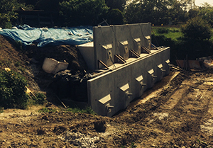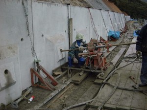 なお、現場条件に応じてその対処方法も異なるため、以下の写真も一施工例としてご理解下さい。実際に施工計画を立てる場合は、現場条件を詳細に検討の上、転倒防止対策等ご検討願います。